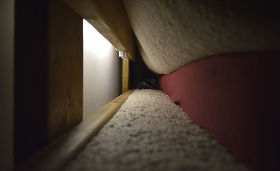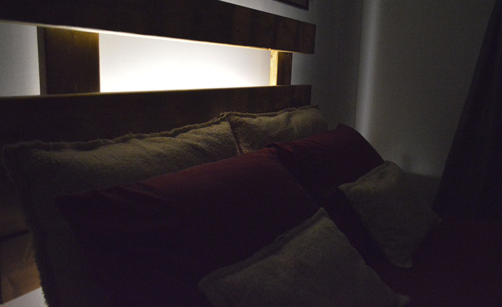 DESIGN & MAKE: This design is simple, fully functional and continuous throughout. It is only finished with one rich layer of stain. The night lights are hidden but accesible by hand.