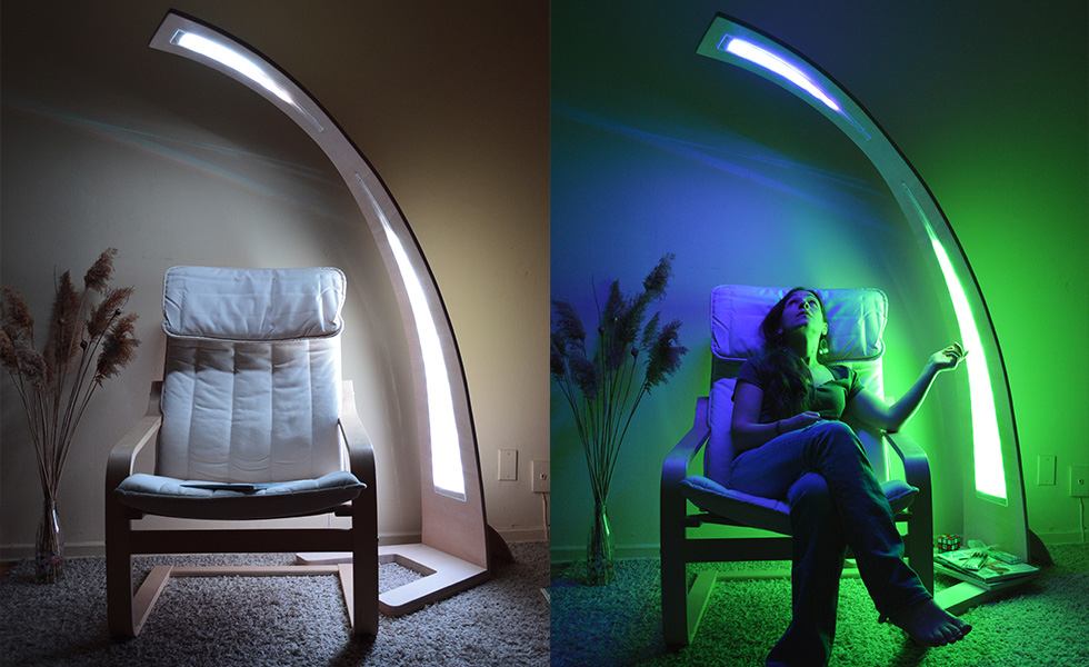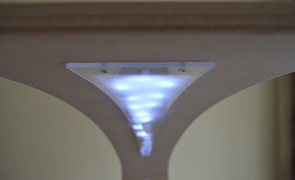 DESIGN & MAKE: The real challenge was to explore, try, and use a new material (bent plywood), which is very different as behaviour and properties from solid wood. Tallos benefits from a collapsible design. Moreover, the lights go on/off and change colours by manipulating a remote controll which makes it easy and fun to use.